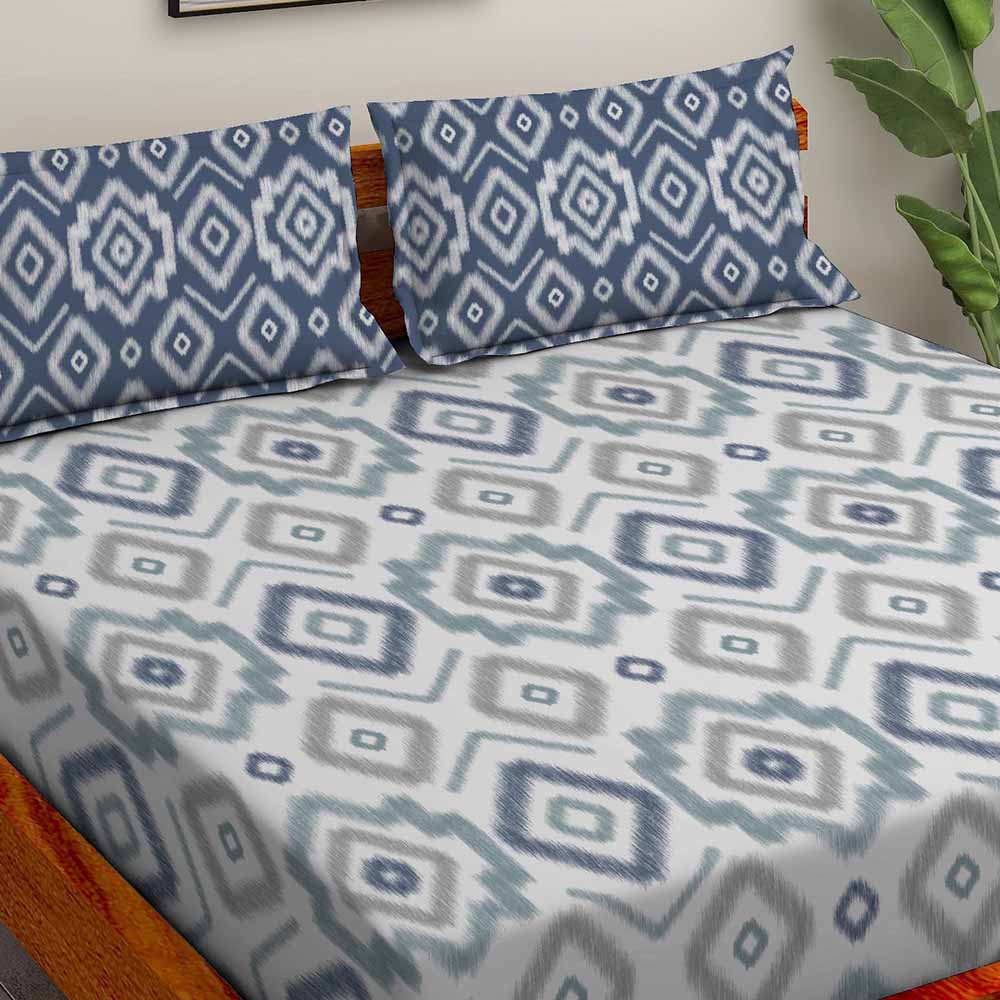 Ikat Navy 100% Cotton Super Soft Antibacterial Bedsheet Set - Splendour Prime
